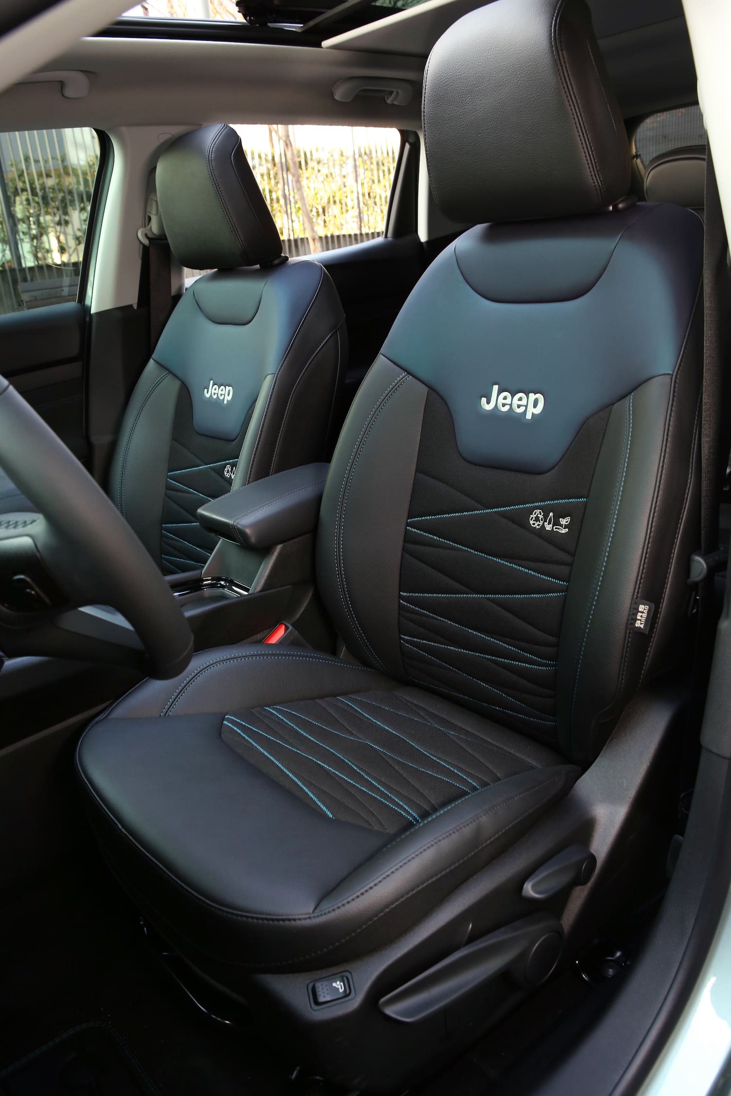 Compass 4xe Plug-in Hybrid ir aprīkojumā ir speciāla auduma un vinila paklāji, kā arī mazgājams salons*, padarot automobili viegli tīrāmu un lieliski pielāgotu brīvdabas piedzīvojumiem.